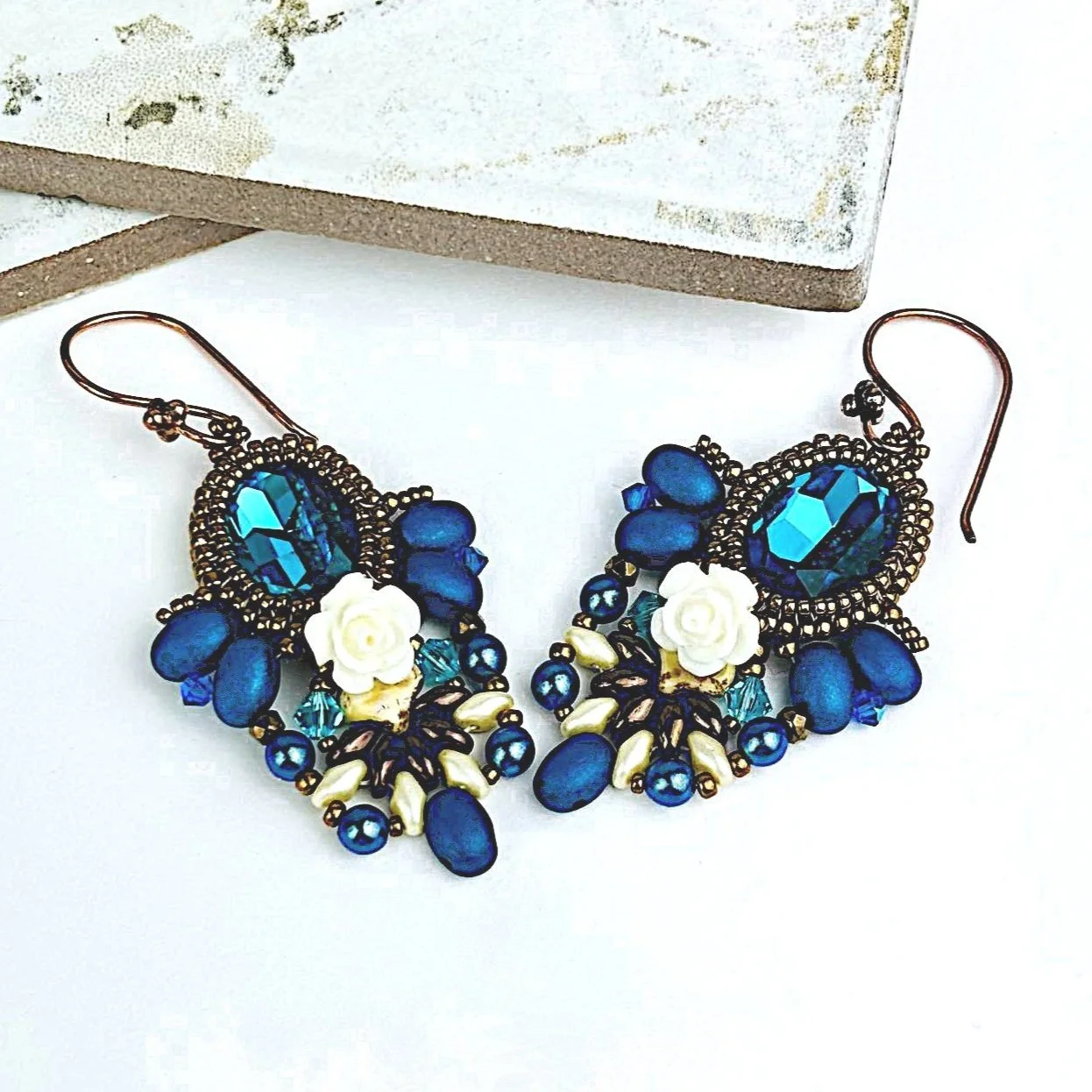 Realizzati a mano con materiali di altissima qualità, questi orecchini con pendentidi un intenso blu cobalto sono delicatamente decorati da una piccola rosa bianca, simbolo di purezza e semplicità. Perfetti per ogni occasione, questi orecchini catturano la luce e l’attenzione, offrendo un tocco di sofisticatezza a qualsiasi outfit. Un accessorio che celebra la bellezza del design classico con un tocco moderno.